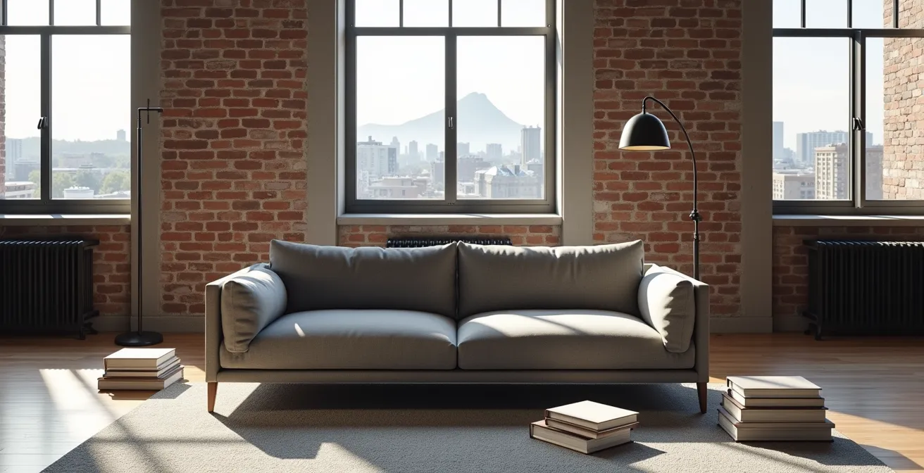Les appartements montréalais, notamment dans les plex et triplex, présentent souvent des salons longs et étroits. Dans un tel espace, le choix d’un canapé aux lignes droites et rectangulaires peut sembler logique, mais c’est souvent ce qui accentue l’effet « couloir ». L’art d’un aménagement réussi réside dans l’équilibre des masses et des formes. Un canapé linéaire et contemporain a besoin de contrepoints pour créer une harmonie visuelle et briser la monotonie.